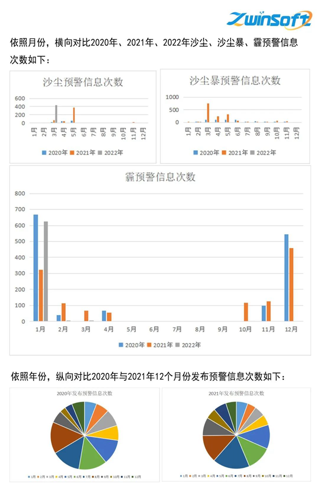 2021年,我國首次沙塵天氣過程發(fā)生時(shí)間為1月10日,較2000-2020年平均(2月17日)偏早38天,較2020年(2月13日)偏早34天,沙塵過程首發(fā)時(shí)間為2002年以來最早。不僅如此,通過《國家突發(fā)事件預(yù)警信息發(fā)布情況月報(bào)》2020年1月——2022年3月數(shù)據(jù)的比對分析,智易時(shí)代還發(fā)現(xiàn)了一些有趣的小規(guī)律。