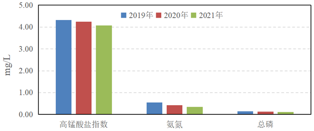 優(yōu)Ⅲ類水質(zhì)斷面比例逐年上升,2021年示范區(qū)優(yōu)Ⅲ類水質(zhì)斷面比例較2020年上升5.8個(gè)百分點(diǎn),較2019年上升9.6個(gè)百分點(diǎn);2021年氨氮和總磷平均濃度較2020年分別下降18.6%和6.3%,較2019年分別下降35.2%和14.4%;2019~2021年高錳酸鹽指數(shù)年均值基本持平。