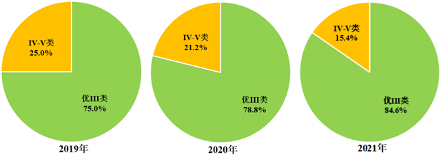 2021年,示范區(qū)優(yōu)Ⅲ類水質(zhì)斷面比例為84.6%,無(wú)劣Ⅴ類斷面。氨氮、總磷平均濃度和高錳酸鹽指數(shù)平均值分別為0.35、0.119和4.1毫克/升。