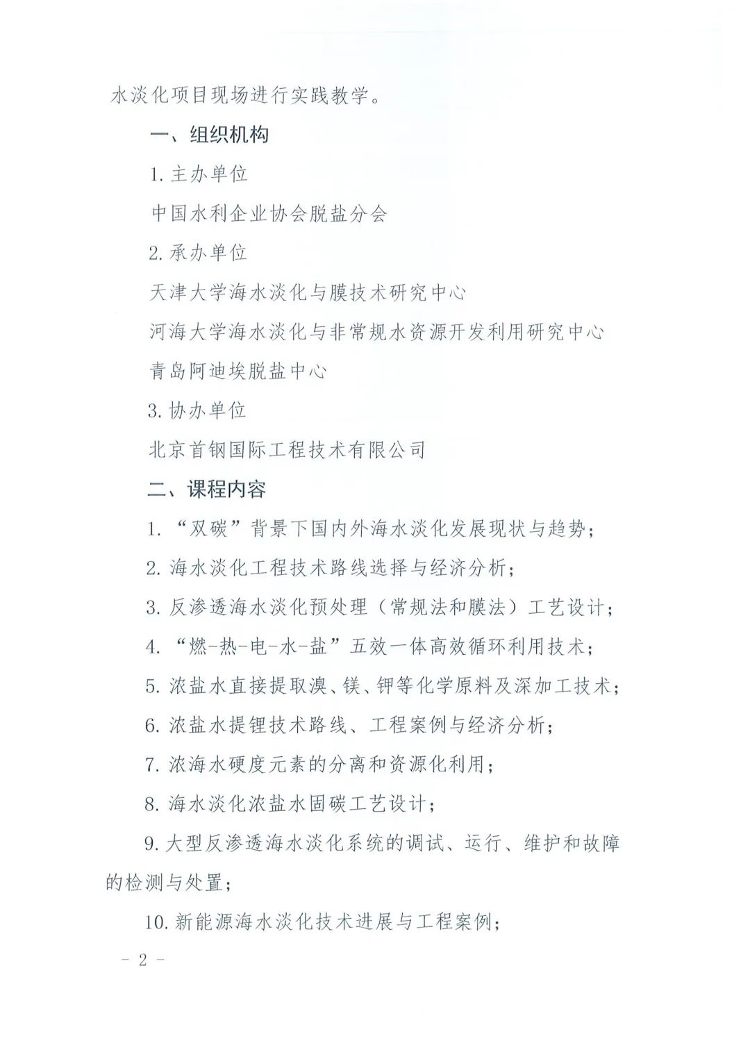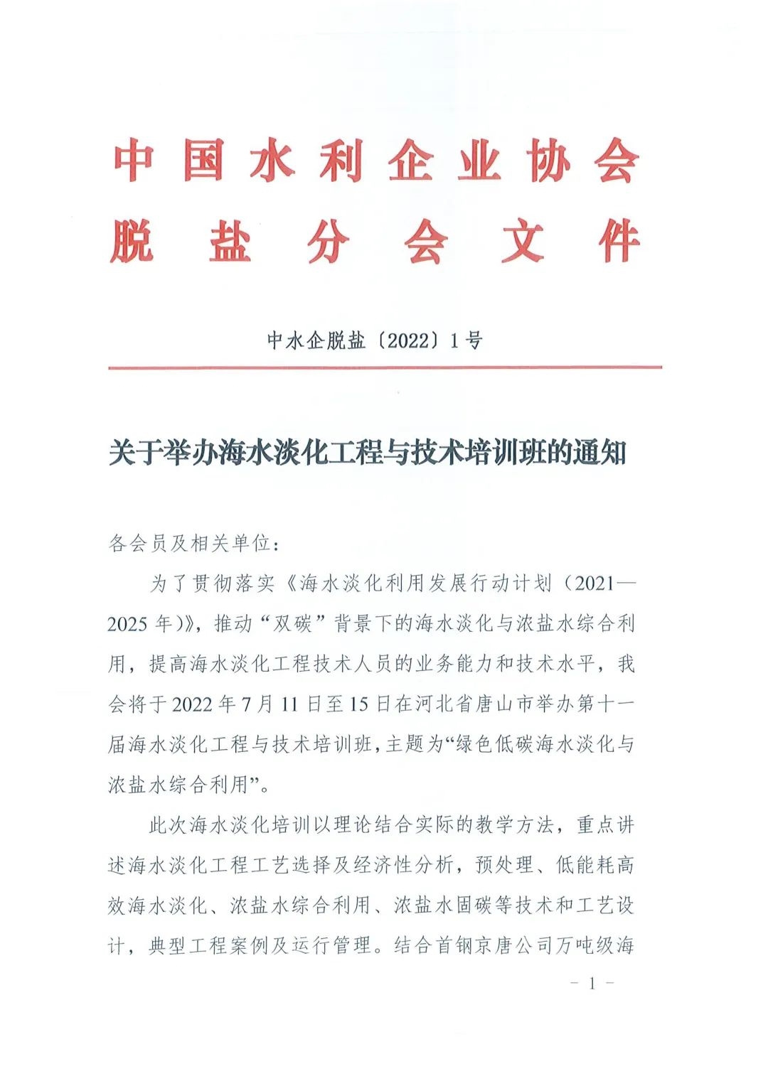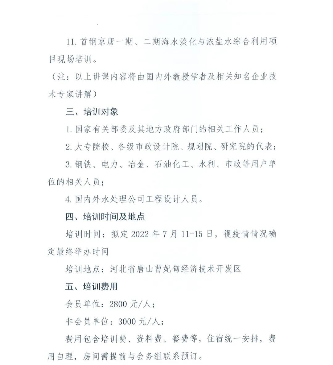 為了貫徹落實(shí)《海水淡化利用發(fā)展行動(dòng)計(jì)劃(2021—2025年)》,推動(dòng)“雙碳”背景下的海水淡化與濃鹽水綜合利用,由中國水利企業(yè)協(xié)會脫鹽分會主辦的第十一屆海水淡化工程與技術(shù)培訓(xùn)班計(jì)劃于2022年7月11日至15日在河北省唐山市曹妃甸區(qū)舉辦,本屆海水淡化培訓(xùn)班的主題是“綠色低碳”海水淡化與濃鹽水綜合利用,課程內(nèi)容豐富充實(shí),教學(xué)質(zhì)量專業(yè)。此次培訓(xùn)以理論結(jié)合實(shí)踐的教學(xué)方法,結(jié)合首鋼京唐公司“燃-熱-電-水-鹽”五效一體高效循環(huán)利用技術(shù)現(xiàn)場進(jìn)行實(shí)踐教學(xué)。