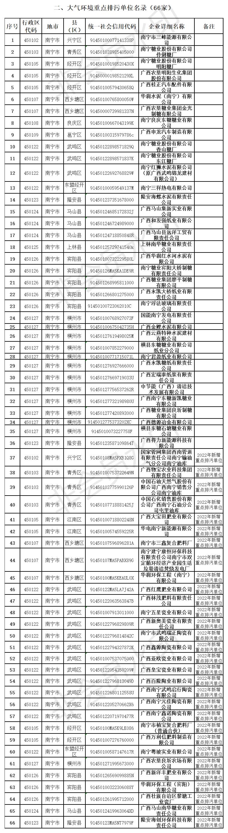 南寧市生態(tài)環(huán)境局關(guān)于印發(fā)2022年南寧市重點排污單位名錄的通知