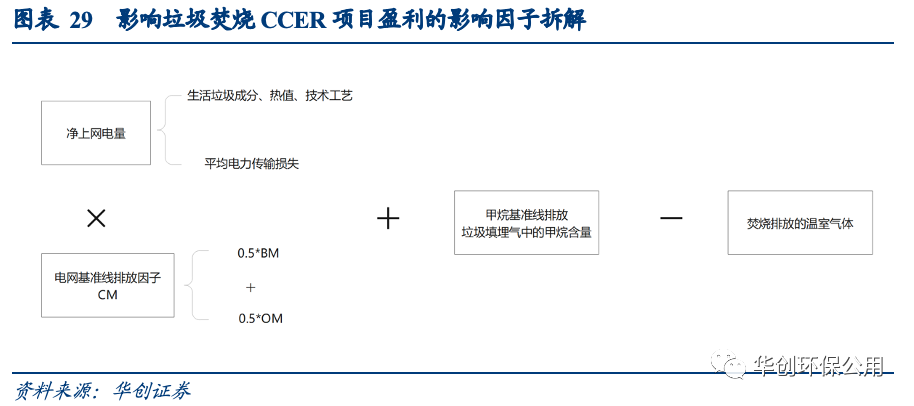 CM-072-V01“多選垃圾處理方式”(第一版)中詳細(xì)規(guī)定了測(cè)算一個(gè)垃圾焚燒項(xiàng)目所產(chǎn)生的CCER噸數(shù)的方法學(xué)。與可再生能源發(fā)電項(xiàng)目相比,垃圾焚燒發(fā)電項(xiàng)目不僅替代了項(xiàng)目所在地電網(wǎng)的火力發(fā)電的碳排放,還避免了垃圾填埋產(chǎn)生的甲烷排放;但焚燒化石燃料也會(huì)帶來一定的溫室氣體排放。