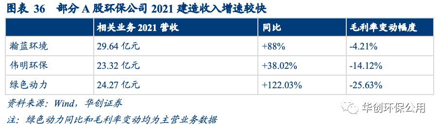 A股主流垃圾焚燒企業(yè)建造收入均出現(xiàn)不同幅度的增長(zhǎng)。瀚藍(lán)環(huán)境2021年度工程與裝備業(yè)務(wù)營(yíng)收大幅增長(zhǎng)88%,由15.73億增至29.64億元(未剔除內(nèi)部交易),但固廢業(yè)務(wù)的毛利率整體下降4.21pct;偉明環(huán)保設(shè)備、EPC及服務(wù)營(yíng)收同比增長(zhǎng)38.02%至23.32億元,但毛利率卻下降14.12%;綠色動(dòng)力2021年前不確認(rèn)建造收入和成本,會(huì)計(jì)政策變更后確認(rèn)建造收入24.27億元,總營(yíng)收大幅增加122.03%至50.57億元,但綜合毛利率卻下降25.63%。垃圾焚燒運(yùn)營(yíng)期毛利率遠(yuǎn)高于建造毛利率,因此我們認(rèn)為會(huì)計(jì)準(zhǔn)則的變更在一定程度上可以解釋上述企業(yè)營(yíng)收增加但毛利率下滑的原因。