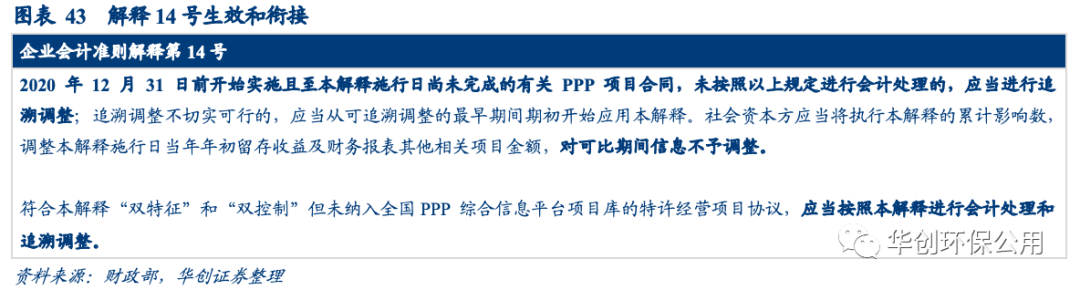 解釋14號(hào)要求對(duì)部分借款費(fèi)用予以費(fèi)用化處理。解釋2號(hào)中對(duì)價(jià)類型(無形資產(chǎn)模式、金融資產(chǎn)模式或混合模式)對(duì)借款費(fèi)用資本化沒有影響而解釋14號(hào)明確借款費(fèi)用的資本化對(duì)象是無形資產(chǎn),對(duì)價(jià)類型是金融資產(chǎn)或者是混合模式下的金融資產(chǎn)部分,相關(guān)的借款費(fèi)用均應(yīng)予以費(fèi)用化。我們認(rèn)為該會(huì)計(jì)準(zhǔn)則的變更是2021年部分環(huán)保上市公司財(cái)務(wù)費(fèi)用上漲的原因之一。