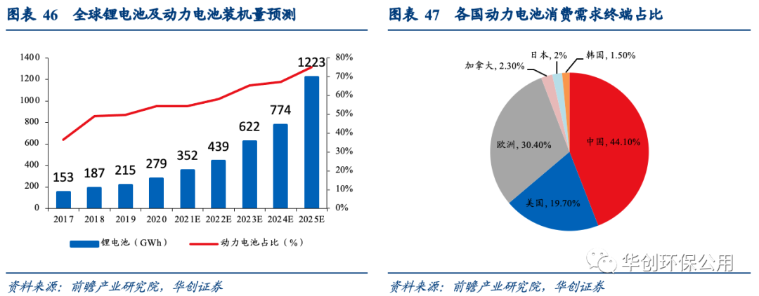 在電動(dòng)汽車市場(chǎng)快速增長(zhǎng)帶動(dòng)下,動(dòng)力型鋰離子電池繼續(xù)保持快速增長(zhǎng)勢(shì)頭。全球動(dòng)力電池年新增裝機(jī)量保持快速增長(zhǎng),根據(jù)前瞻產(chǎn)業(yè)研究院的預(yù)測(cè),2025年全球鋰電池裝機(jī)量將會(huì)達(dá)到1223GWh,動(dòng)力電池占比高達(dá)75.2%。2020年中國(guó)動(dòng)力電池終端消費(fèi)需求高達(dá)44.1%,居世界第一位。硫酸鈷和硫酸鎳是生產(chǎn)三元?jiǎng)恿﹄姵氐闹匾牧?,未來有望量?jī)r(jià)齊升。