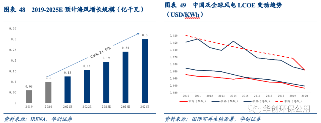 海上風(fēng)電增長(zhǎng)空間巨大,平價(jià)節(jié)點(diǎn)或?qū)⒂瓉硌b機(jī)潮。海上風(fēng)電“十四五”期間預(yù)計(jì)新增裝機(jī)200GW,20-25年CAGR約25%,高于十四五期間風(fēng)電整體13.5%的增速。隨著海風(fēng)伙伴計(jì)劃首次提出海風(fēng)將于2024年實(shí)現(xiàn)平價(jià),海風(fēng)或?qū)⒂谄絻r(jià)節(jié)點(diǎn)迎來裝機(jī)潮,海風(fēng)未來發(fā)展可期。