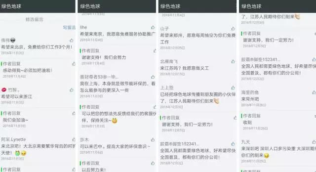 不積跬步無以至千里,不積小流無以成江河。如今不僅成都人民知道了綠色地球,全國(guó)各地很多人都在關(guān)注這個(gè)組織,關(guān)心他們過得好不好,關(guān)心他們有哪些問題需要幫助,并且天天在微信后臺(tái)搖旗吶喊,呼喚他們開到全國(guó)!!你們感受下: