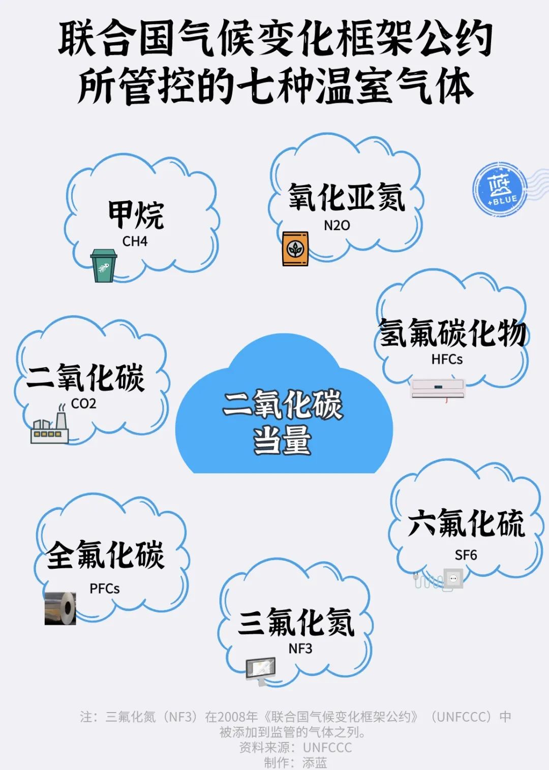 為了便于統(tǒng)計(jì)計(jì)算,人們把這些溫室氣體按照影響程度不同,折算成二氧化碳當(dāng)量,所以大家常常用二氧化碳指代溫室氣體。