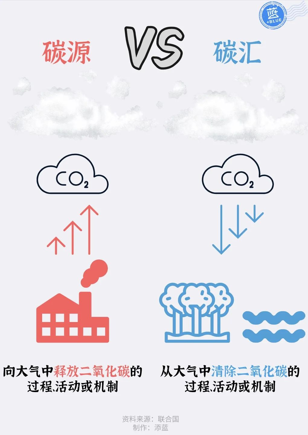 我們可以用下面的圖,來(lái)理解碳源和碳匯的區(qū)別??