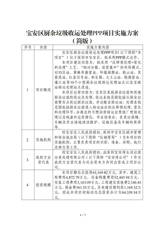 據(jù)悉,為構(gòu)建完善的廚余垃圾分類投放、收集、運輸、處理體系,推動寶安區(qū)廚余垃圾收運處理PPP項目盡快落地,去年8月《寶安區(qū)廚余垃圾收運處理PPP項目實施方案》(征求意見稿)掛網(wǎng)公示,面向社會公開征求意見。