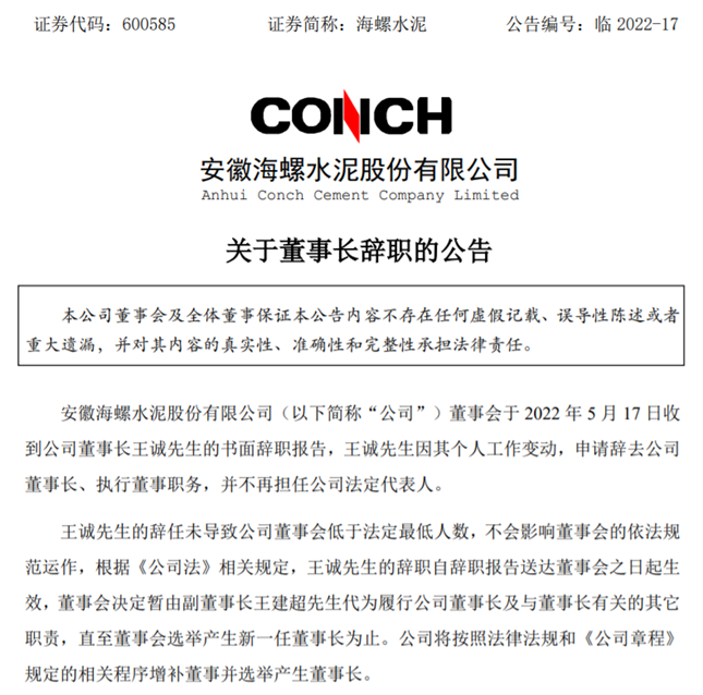 公開資料顯示,王誠出生于1965年3月,安徽淮南人,在擔(dān)任安徽省人民政府副秘書長之前,歷任淮南市副市長、市委常委、常務(wù)副市長,蚌埠市委副書記、蚌埠市市長,安徽海螺集團(tuán)黨委書記、董事長等職。2013年,王誠調(diào)任蚌埠市委副書記,2016年12月任蚌埠市代市長,2017年2月任蚌埠市市長;2021年4月,王誠任安徽海螺集團(tuán)有限責(zé)任公司黨委書記、董事長,任期為2021年5月28日-2022年5月29日。2022年5月17日,安徽海螺水泥股份有限公司(簡稱:海螺水泥)發(fā)布公告稱,其董事長王誠因個(gè)人工作變動原因,辭去公司董事長、執(zhí)行董事職務(wù),并不再擔(dān)任法定代表人。董事會決定暫由王建超代為履行公司董事長及與董事長有關(guān)的其它職責(zé),直至董事會選舉產(chǎn)生新一任董事長為止。海螺集團(tuán)作為全世界最大的建材企業(yè)集團(tuán)之一,王誠在任期即將結(jié)束前匆匆離職,便已引起外界猜測, 6月13日安徽紀(jì)檢監(jiān)察網(wǎng)公布的“王誠涉嫌嚴(yán)重違紀(jì)違法”一事,更是引起了熱議。據(jù)企查查獲悉,安徽省國資委通過安徽省投資集團(tuán)控股有限公司持有海螺集團(tuán)51%股權(quán),為控股股東,港股上市公司中國海創(chuàng)控股(香港)有限公司通過蕪湖海創(chuàng)實(shí)業(yè)有限責(zé)任公司持有海螺集團(tuán)49%股權(quán),為參股股東。在上市公司層面,王誠任職期間,海螺水泥作為海螺集團(tuán)旗下控股子公司,收購了關(guān)聯(lián)企業(yè)海螺新能源,加快對光伏儲能項(xiàng)目的投資,又在資本市場頻頻捧場同行定增,甚至直接增持和舉牌,一改此前低調(diào)的行事風(fēng)格。不僅如此,海螺集團(tuán)旗下港股公司海螺創(chuàng)業(yè)備受資本市場關(guān)注。3月30日,海螺創(chuàng)業(yè)分拆海螺環(huán)保在港交所主板上市。5月6日,海螺創(chuàng)業(yè)對外宣布正在考慮分拆旗下安徽海創(chuàng)綠能環(huán)保集團(tuán)股份有限公司在上交所主板獨(dú)立上市。如若成行,屆時(shí)海螺集團(tuán)將擁有5家上市平臺。傳統(tǒng)行業(yè)遇發(fā)展瓶頸,加速布局環(huán)保、新能源領(lǐng)域盡管近年來大動作不斷,但海螺集團(tuán)仍遭遇了發(fā)展瓶頸,業(yè)績增長基本停滯。高能耗、高排放行業(yè)在“碳達(dá)峰、碳中和”的雙碳背景下,面臨極大的轉(zhuǎn)型壓力。