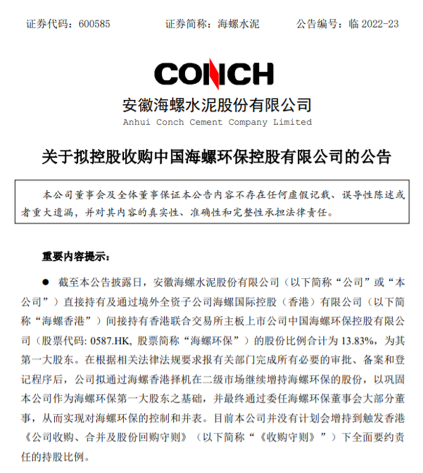 2022年3月9日,海螺水泥發(fā)布公告稱,2022年將投資50億元用于發(fā)展光伏電站、儲能等新能源業(yè)務(wù),實(shí)現(xiàn)下屬工廠光伏發(fā)電全覆蓋,預(yù)計(jì)至2022年底,光伏發(fā)電裝機(jī)容量可達(dá)1GW,年發(fā)電能力10億度。在環(huán)保領(lǐng)域,6月3日,海螺水泥發(fā)布公告稱,為加強(qiáng)資源整合及產(chǎn)業(yè)融合,海螺水泥擬對海螺環(huán)保進(jìn)行控股收購,以鞏固海螺水泥作為海螺環(huán)保第一大股東的基礎(chǔ),并最終通過委任海螺環(huán)保董事會大部分董事,實(shí)現(xiàn)對海螺環(huán)保的控制和并表。 截至公告日,海螺水泥直接持有及通過境外海螺香港間接持有股份占海螺環(huán)??偣杀颈壤秊?3.83%,為第一大股東。自海螺環(huán)保上市破發(fā)后,海螺水泥便頻頻出手進(jìn)行多筆增持,持股比例不斷上升。海螺環(huán)保近年來的業(yè)績整體來看也非??捎^。2019年至2021年,海螺環(huán)保的營業(yè)收入分別為7.38億元、11.44億元、16.98億元,同比增長分別為85.6%、55.06%、48.44%;歸屬凈利潤分別3.53億元、4.69億元、5.79億元,同比增長分別為51.28%、32.74%、23.37%。海螺環(huán)保作為安徽省環(huán)保領(lǐng)域龍頭企業(yè),海螺水泥收購海螺環(huán)保不僅有利于將傳統(tǒng)水泥窯與廢棄物處置相結(jié)合,推動循環(huán)經(jīng)濟(jì)發(fā)展的綠色轉(zhuǎn)型,而且有助于布局水泥主業(yè)相關(guān)的新興產(chǎn)業(yè),打造新的產(chǎn)業(yè)增長極和利潤增長點(diǎn),具有重要的戰(zhàn)略意義。在王誠辭去海螺水泥董事長、執(zhí)行董事職務(wù)后,6月1日,海螺水泥發(fā)布公告稱,根據(jù)公司經(jīng)營管理需要,董事會一致推選王建超先生代為履行公司第九屆董事會董事長及與董事長相關(guān)的其它職責(zé),直至董事會選舉產(chǎn)生新一任董事長為止。此外,據(jù)海螺集團(tuán)官網(wǎng)顯示,5月19日,海螺集團(tuán)五屆一次董事會上,選舉楊軍擔(dān)任海螺集團(tuán)董事長一職。據(jù)了解,王誠的繼任者楊軍是此前有色控股的掌舵人,1969年12月出生,正高級經(jīng)濟(jì)師。從履歷來看,2010年7月至2012年9月楊軍任銅陵有色總經(jīng)理,2012年9月至2014年7月任有色控股黨委副書記、董事、總經(jīng)理,以及旗下上市公司銅陵有色的黨委書記;2014年7月至2014年8月任有色控股黨委書記、總經(jīng)理、董事、銅陵有色黨委書記;2014年8月至2015年3月任有色控股董事長、黨委書記、總經(jīng)理;2015年3月至本次任命之前擔(dān)任有色控股董事長、黨委書記,2014年8月至本次任命之前擔(dān)任銅陵有色董事長。資料顯示,有色控股和海螺集團(tuán)是安徽省僅有的入選世界500強(qiáng)的兩家本土企業(yè)。其中,有色控股是安徽省首家銷售收入突破千億元大關(guān)的企業(yè),上市公司銅陵有色是中國銅工業(yè)板塊第一股。2021年,銅陵有色和海螺水泥分別實(shí)現(xiàn)營收1310.34億元和1679.53億元,在安徽省屬企業(yè)中的地位舉足輕重。新任掌舵人將帶領(lǐng)海螺集團(tuán)走出怎樣的發(fā)展之路呢?新能源、環(huán)保等布局將怎樣推進(jìn)?也是行業(yè)目前很關(guān)注的話題。