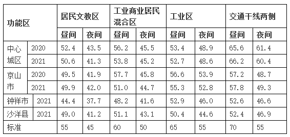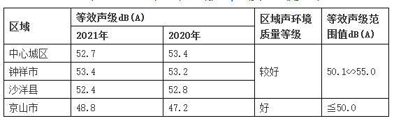 表8 2021年城市區(qū)域聲環(huán)境質(zhì)量監(jiān)測(cè)結(jié)果