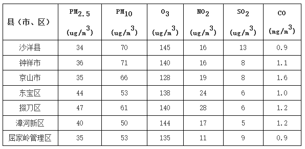 荊門市城市環(huán)境空氣質(zhì)量監(jiān)測(cè)網(wǎng)共設(shè)10個(gè)監(jiān)測(cè)點(diǎn)。其中,荊門中心城區(qū)設(shè)6個(gè)環(huán)境空氣質(zhì)量自動(dòng)監(jiān)測(cè)點(diǎn),測(cè)點(diǎn)分別為竹園小學(xué)站、掇刀站、石化一小站、西山林語(yǔ)站、龍泉中學(xué)南校站和漳河新區(qū)鳳袁路站;鐘祥市、京山市、沙洋縣、屈家?guī)X管理區(qū)分別設(shè)置1個(gè)環(huán)境空氣質(zhì)量自動(dòng)監(jiān)測(cè)點(diǎn),測(cè)點(diǎn)分別為:鐘祥市長(zhǎng)壽路站、京山市輕機(jī)大道站、沙洋縣荷花路站、屈家?guī)X金色農(nóng)谷站。