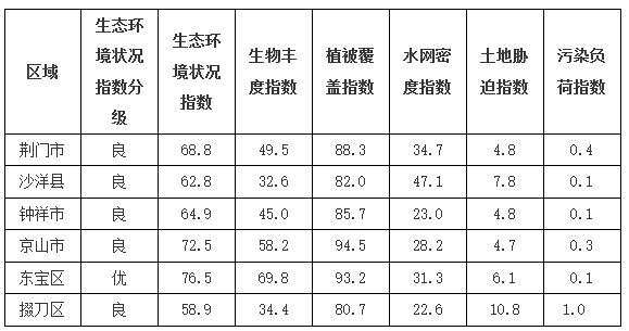 表12 荊門市生態(tài)環(huán)境狀況年際比較情況一覽表