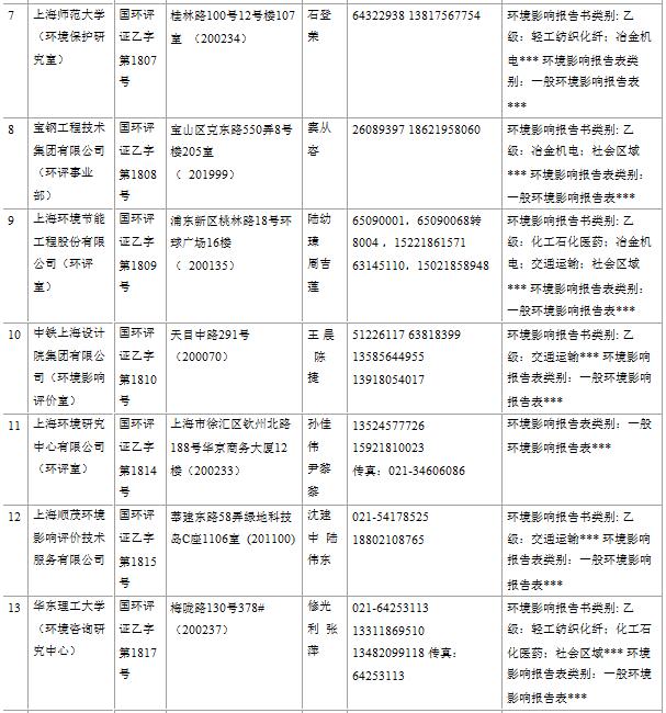 上海市建設項目環(huán)境影響評價單位一覽表(2017年2月更新)