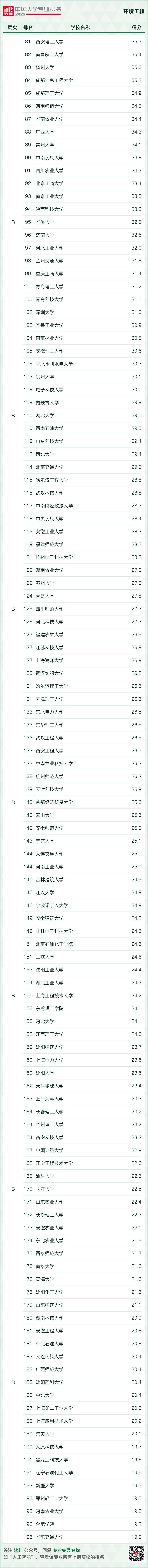 環(huán)境科學與工程類專業(yè)排名情況如下: