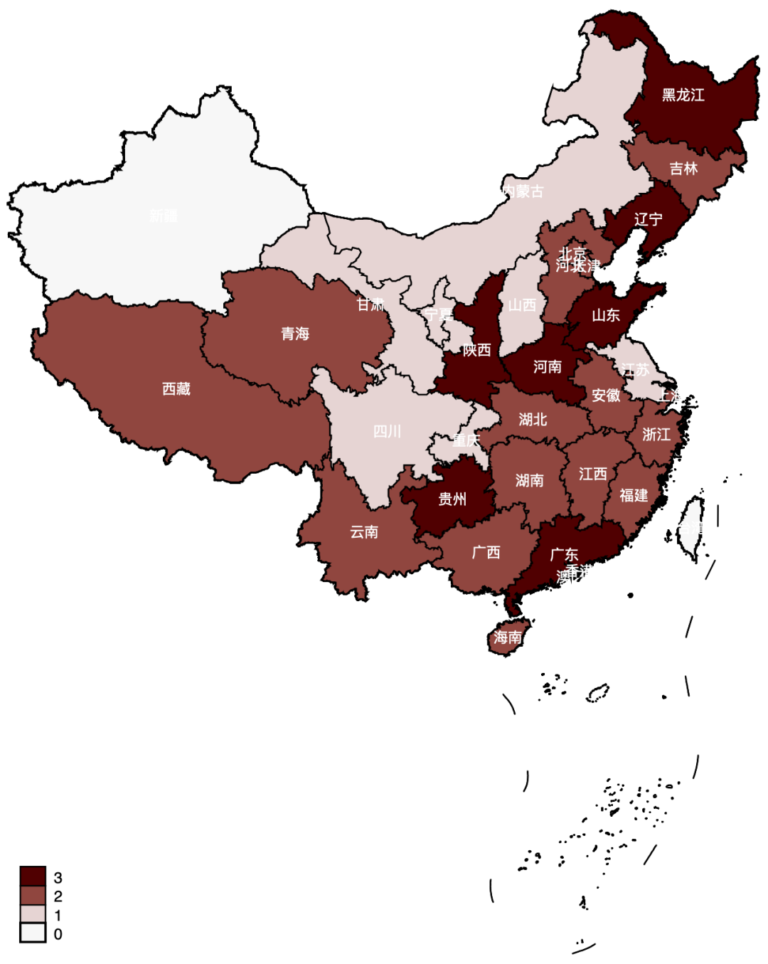 地區(qū)上看,中央環(huán)保督察組進(jìn)駐的31個(gè)省區(qū)市中,除新疆維吾爾自治區(qū)(含新疆生產(chǎn)建設(shè)兵團(tuán))外,其余30個(gè)省區(qū)市均被反饋過(guò)生活垃圾問(wèn)題。其中,河南省、山東省、遼寧省、廣東省、山西省、貴州省和黑龍江省最為突出,在3次中央環(huán)保督察中均被反饋了生活垃圾問(wèn)題,詳見(jiàn)圖2。