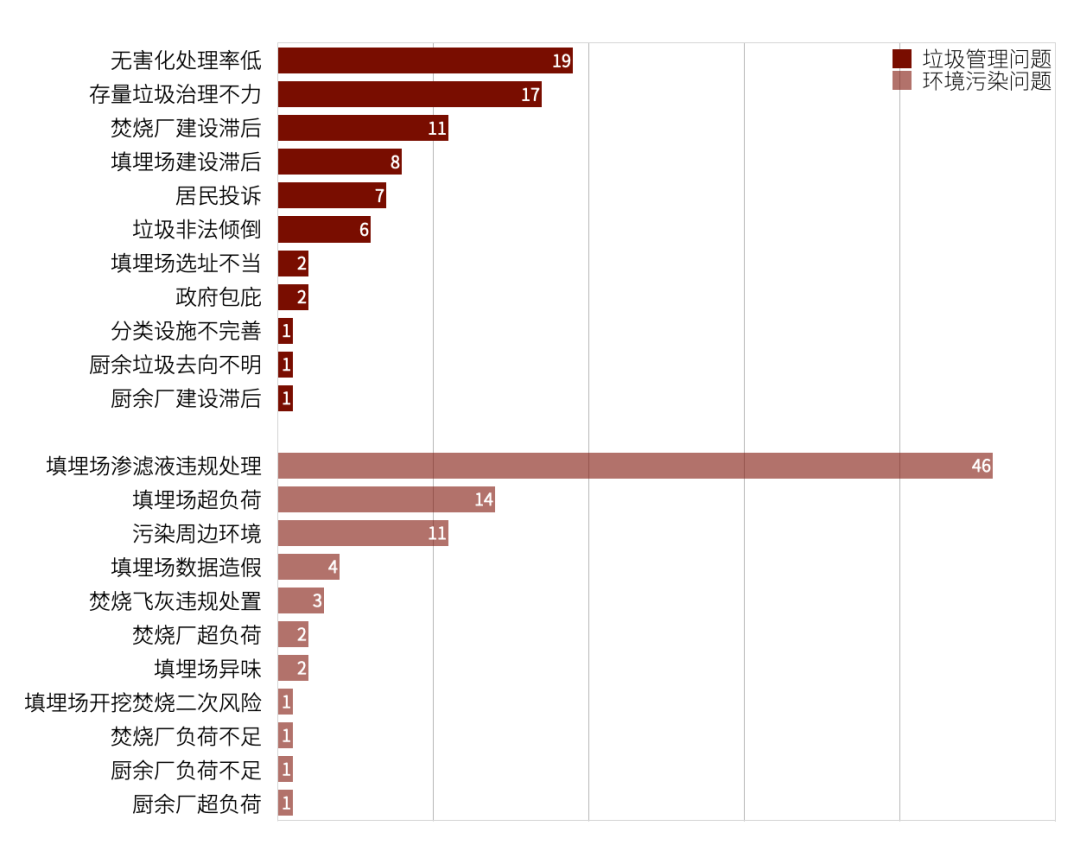 在垃圾管理問(wèn)題中,無(wú)害化處理率低、存量垃圾治理不力、焚燒廠建設(shè)滯后、填埋場(chǎng)建設(shè)滯后等問(wèn)題表現(xiàn)突出。