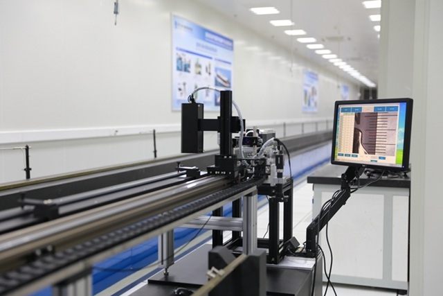 針對油水界面探測儀檢測方法落后問題,國家海洋油氣資源開發(fā)裝備產(chǎn)業(yè)計量中心聯(lián)合舟山市質(zhì)量技術(shù)監(jiān)督檢測研究院組成了專家組,深入開展實地調(diào)查研究。技術(shù)專家陳歡扎根實地,依托在長度精密測量領(lǐng)域的多年技術(shù)經(jīng)驗積累,整合視覺檢測、機(jī)電自動化技術(shù),積極攻關(guān),最終研發(fā)一套針對油水界面探測儀的全自動檢測系統(tǒng),實現(xiàn)了測量過程自動化,測量數(shù)據(jù)自動記錄,一鍵生成報告。系統(tǒng)研發(fā)自動測量功能,上位機(jī)中選擇油水界面測量儀的規(guī)格,一鍵自動檢測運行,伺服電機(jī)帶動機(jī)器視覺自動識別模組在高精度導(dǎo)軌上運行,根據(jù)預(yù)置點位自動識別圖像中線紋位置,結(jié)合圖像算法和激光干涉儀標(biāo)準(zhǔn)數(shù)據(jù)實現(xiàn)精確檢測;系統(tǒng)研發(fā)檢測數(shù)據(jù)實時自動記錄功能,對于預(yù)置點位的數(shù)據(jù),上位機(jī)系統(tǒng)通過算法處理獲取準(zhǔn)確檢測數(shù)據(jù),并實現(xiàn)軟件中自動記錄功能。系統(tǒng)研發(fā)報告一鍵生成功能,根據(jù)應(yīng)用實際需求,定制化報告,可一鍵生成導(dǎo)出。檢測系統(tǒng)操作方便,檢測效率高,大幅度縮短油水界面探測儀的檢測時間,助力海洋經(jīng)濟(jì)快速發(fā)展。系統(tǒng)服務(wù)于各類檢測機(jī)構(gòu)、企業(yè),滿足油水界面探測儀的檢測需求。助力了計量檢測單位、企業(yè)等檢測工作的數(shù)字化、高效化。