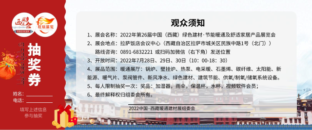2022年第26屆中國(西藏)綠色建材·節(jié)能暖通及舒適家居產品展覽會將于2022年7月28日-30日在拉薩飯店會議中心召開。展會由西藏建筑裝飾協(xié)會聯(lián)手北京旺旅展覽展示有限公司傾力打造,西藏建筑業(yè)協(xié)會大力支持,共享五萬寵大數(shù)據(jù)庫及新媒體資源,專業(yè)邀請經(jīng)銷、代理商、設計師與會洽談;實現(xiàn)資源共享,品牌聯(lián)盟,吸引眾多品牌積極參與,打造西藏建筑裝飾行業(yè)旗艦展會。