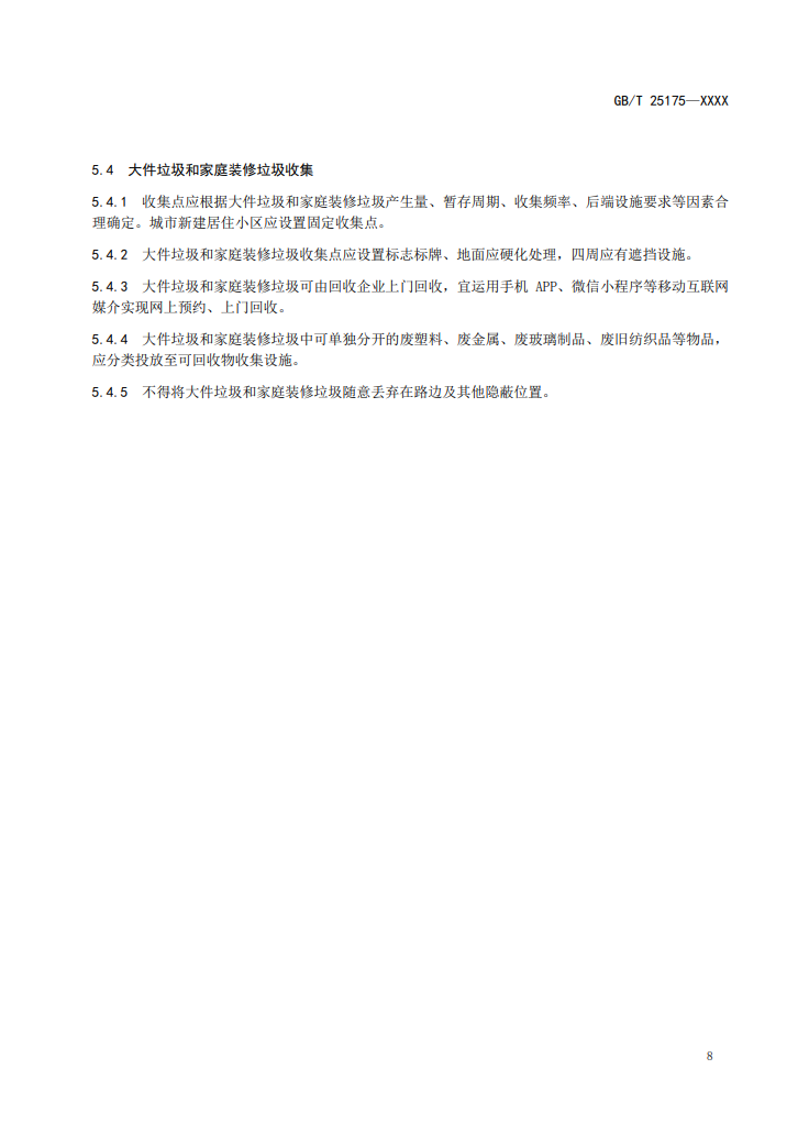 8、可回收物、家庭廚余垃圾、大件垃圾、家庭裝修垃圾的收集、轉運暫存、運輸方式應與后續(xù)的分揀、拆解、利用等方式相適應。