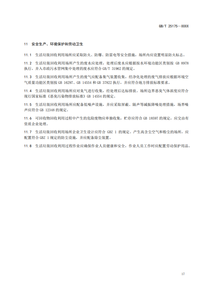 10、生活垃圾回收利用過程應落實安全生產(chǎn)、產(chǎn)品質量、勞動保護等要求。