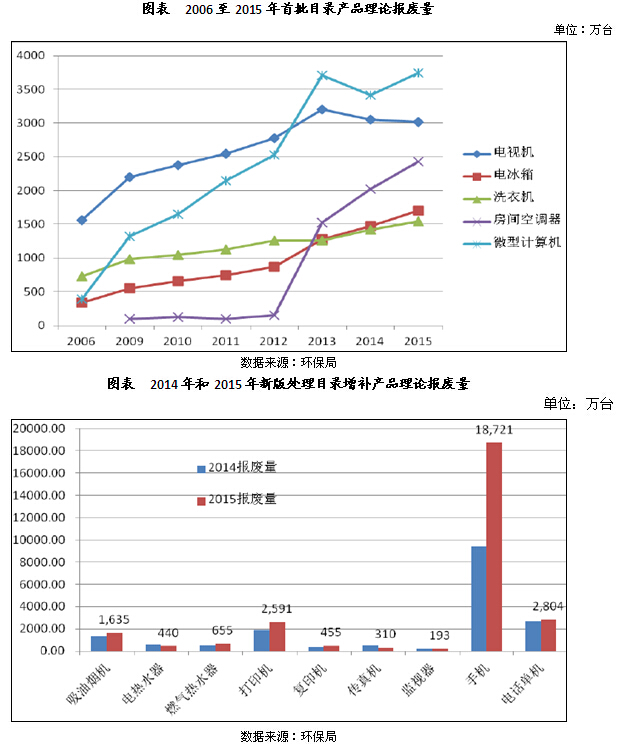據(jù)了解,截止到2015年底,進(jìn)入廢棄電器電子產(chǎn)品處理基金補(bǔ)貼名單的處理企業(yè)年處理能力超過(guò)1.5億臺(tái),實(shí)際處理廢棄電器電子產(chǎn)品達(dá)到7500萬(wàn)臺(tái)左右。