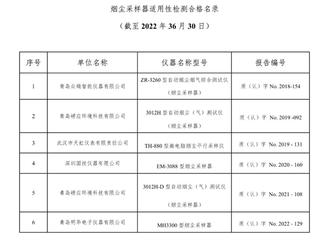 原標(biāo)題:總站報告 | 廢氣類適用性檢測合格名錄(截至2022年6月30日)