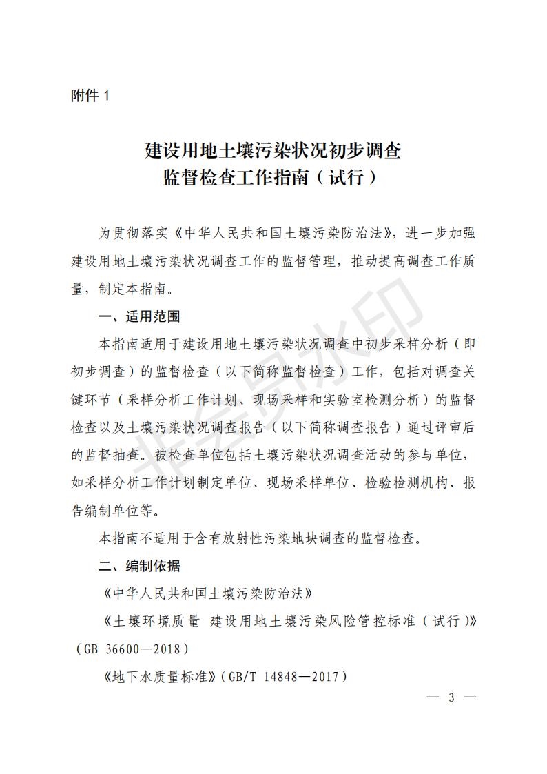 附件:1.建設(shè)用地土壤污染狀況初步調(diào)查監(jiān)督檢查工作指南(試行)