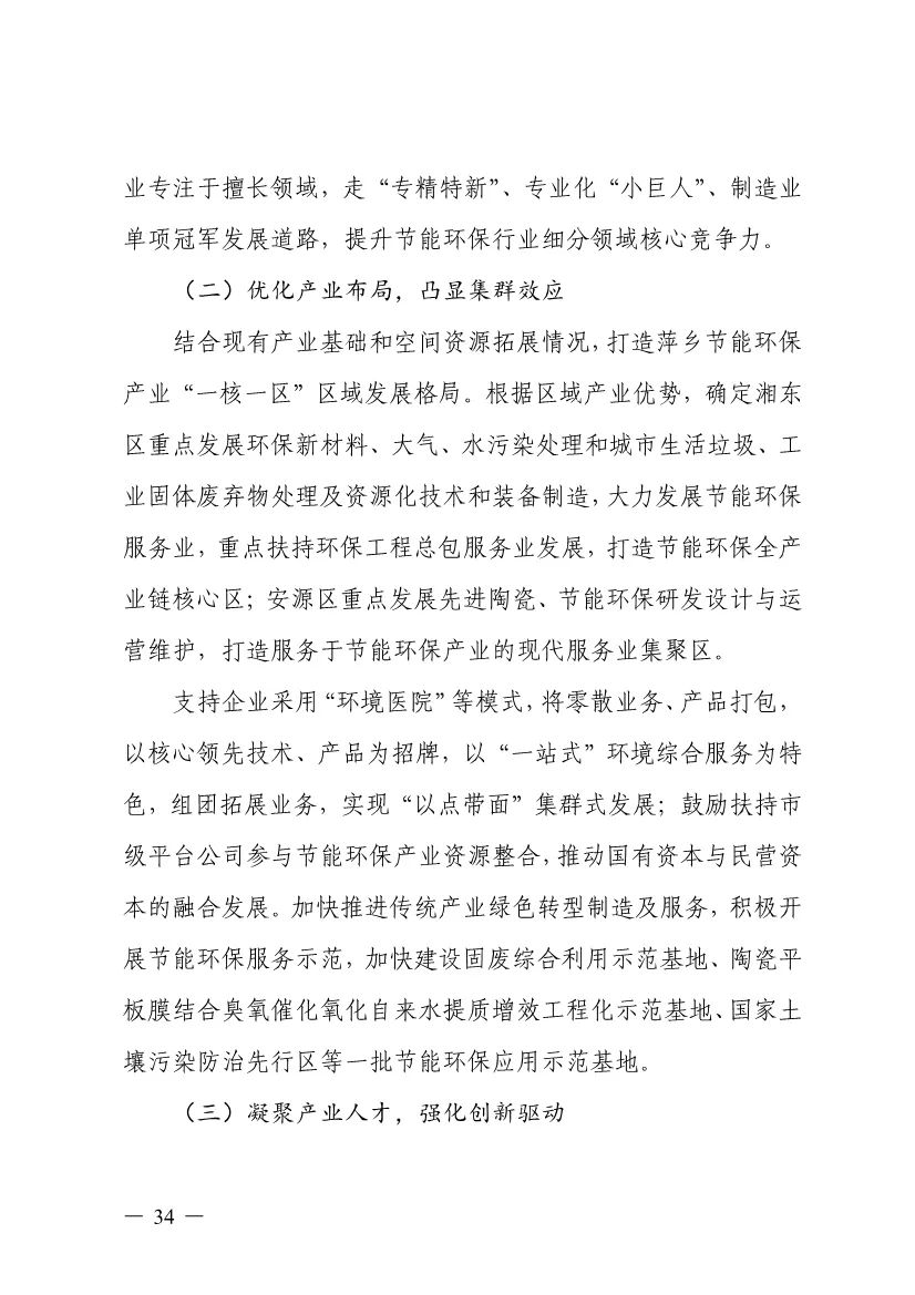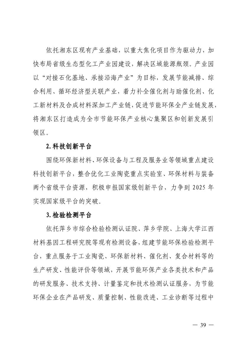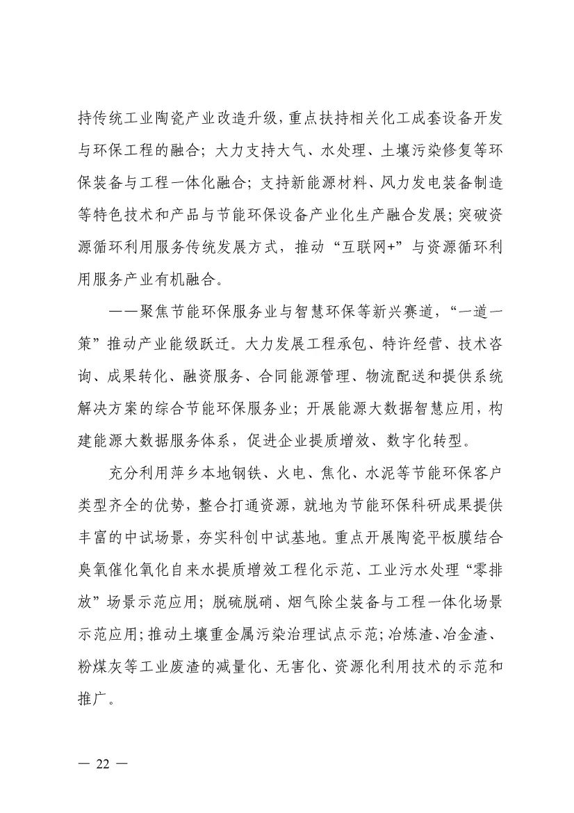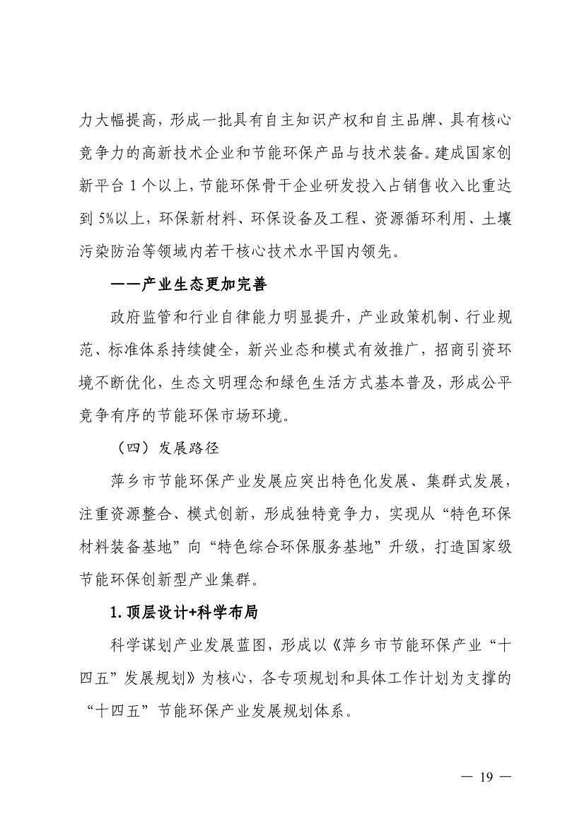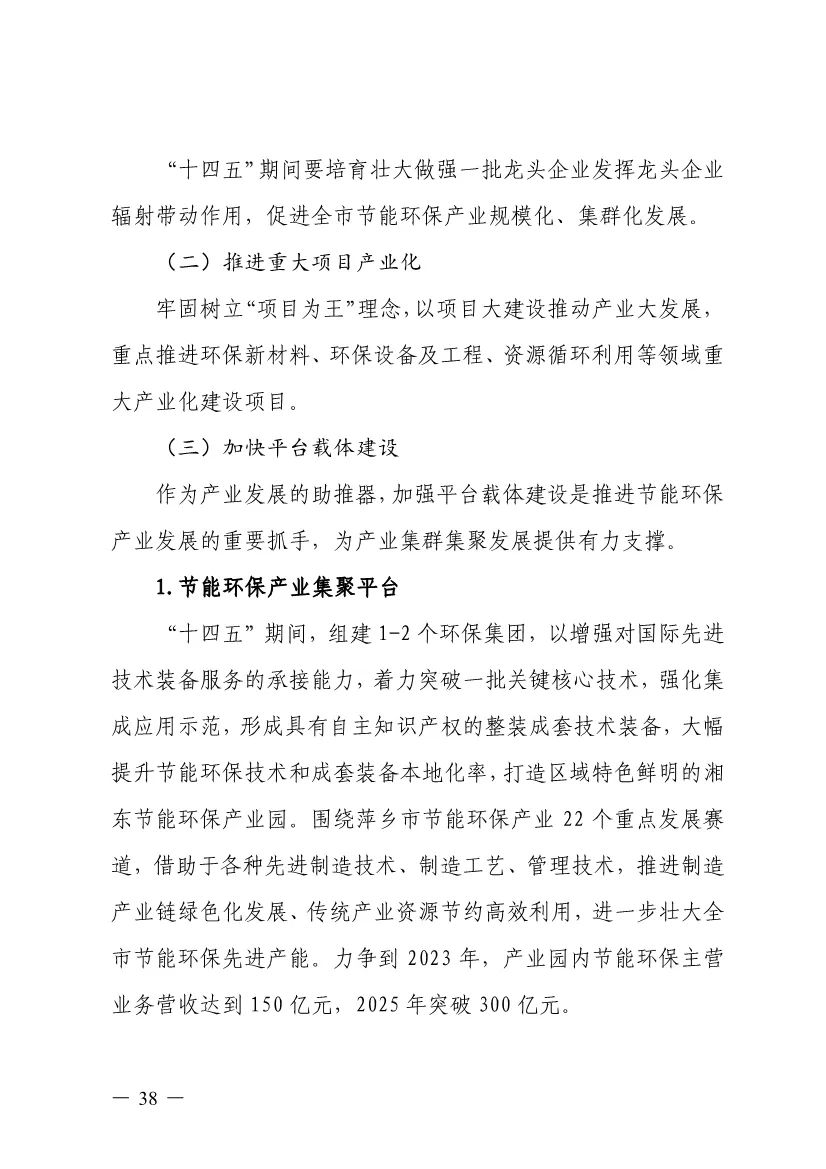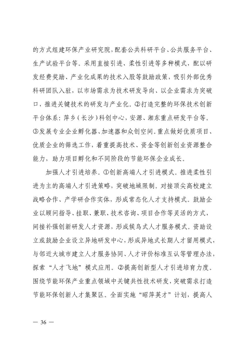 “十四五”期間,組建1-2個環(huán)保集團(tuán),以增強(qiáng)對國際先進(jìn)技術(shù)裝備服務(wù)的承接能力,著力突破一批關(guān)鍵核心技術(shù),強(qiáng)化集成應(yīng)用示范,形成具有自主知識產(chǎn)權(quán)的整裝成套技術(shù)裝備,大幅提升節(jié)能環(huán)保技術(shù)和成套裝備本地化率,打造區(qū)域特色鮮明的湘東節(jié)能環(huán)保產(chǎn)業(yè)園。