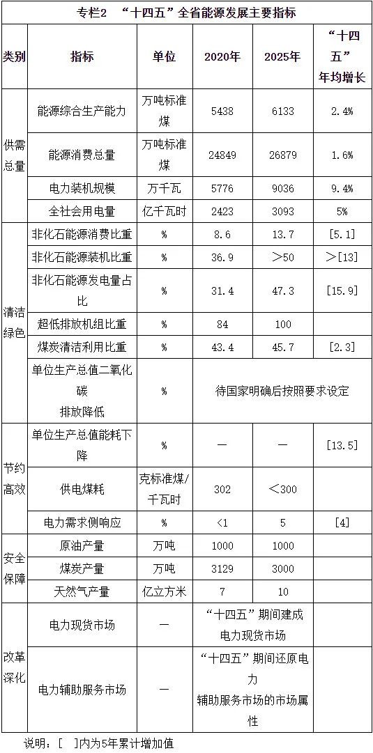 按照構(gòu)建清潔低碳、安全高效的現(xiàn)代能源體系和著力建設(shè)清潔能源強省的目標(biāo)要求,到“十四五”末全省能源發(fā)展主要目標(biāo)是: