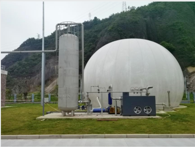 濕式中溫厭氧產(chǎn)沼技術(shù)采用2座2300m³厭氧消化罐24小時連續(xù)運行,溫度控制在38±2℃,厭氧消化產(chǎn)生的沼氣收集輸送至沼氣儲柜,在經(jīng)過一系列凈化處理之后進(jìn)入燃?xì)獍l(fā)電機發(fā)電或用于冬季建筑取暖用熱系統(tǒng)。