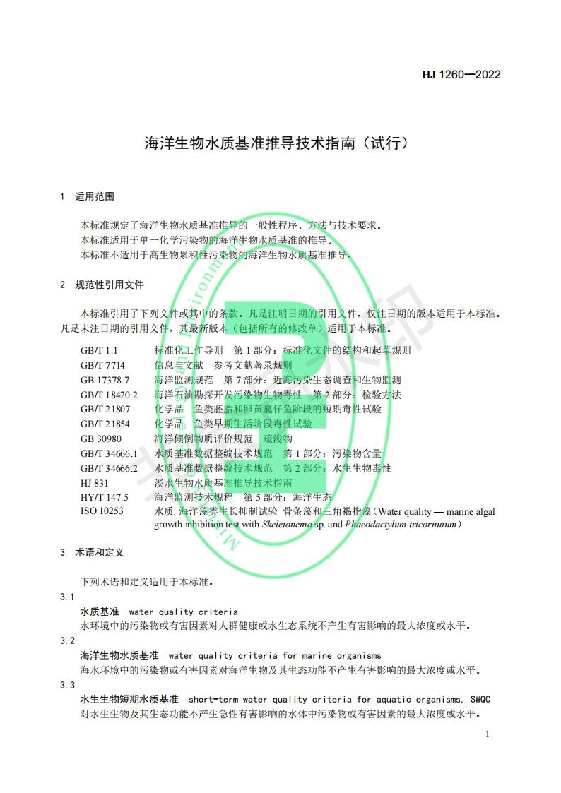 原標題:關于發(fā)布國家生態(tài)環(huán)境標準《海洋生物水質基準推導技術指南(試行)》的公告