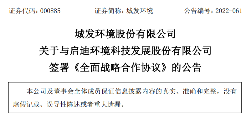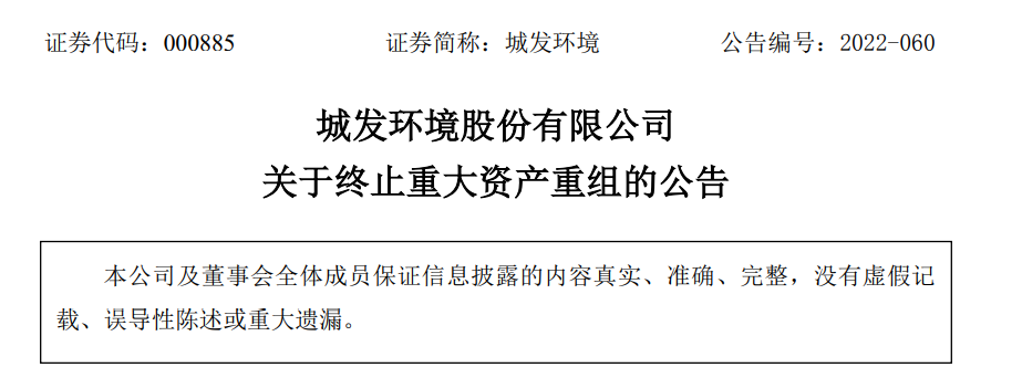 據(jù)公告顯示,終止本次重大資產(chǎn)重組的原因是城發(fā)環(huán)境自籌劃本次重大資產(chǎn)重組事項以來,嚴格按照相關(guān)法律法規(guī)的要求,與交易對方及其他相關(guān)雙方持續(xù)進行磋商與研討,并根據(jù)磋商結(jié)果積極推進相關(guān)盡職調(diào)查、審計、信息披露、內(nèi)部決策等工作。鑒于本次重大重組方案論證歷時較長,相關(guān)市場環(huán)境較本次交易籌劃之初發(fā)生較大變化。經(jīng)審慎研究分析,為切實維護城發(fā)環(huán)境及全體股東利益,經(jīng)與啟迪環(huán)境協(xié)商,雙方?jīng)Q定終止本次重大資產(chǎn)重組事項。根據(jù)法律法規(guī)及公司章程規(guī)定,經(jīng)雙方充分溝通及友好協(xié)商,城發(fā)環(huán)境董事會經(jīng)審慎研究后,依法履行了相關(guān)審議程序,終止本次重大資產(chǎn)重組。同時,另一則公告顯示,城發(fā)環(huán)境與啟迪環(huán)境簽署的戰(zhàn)略框架性協(xié)議。合作內(nèi)容、合作機制與合作期限等事項的具體實施尚存在不確定性,具體的項目合作協(xié)議或項目開展方案尚需雙方進一步協(xié)商確定。公告顯示,基于城發(fā)環(huán)境在環(huán)保項目建設(shè)、區(qū)域市場拓展、環(huán)保技術(shù)研發(fā)及人員交流等方面與啟迪環(huán)境已經(jīng)開展了深入、全面的合作,具備良好的合作基礎(chǔ),為延續(xù)雙方友好合作關(guān)系、充分發(fā)揮雙方在環(huán)保、能源領(lǐng)域的發(fā)展優(yōu)勢,公司與啟迪環(huán)境共同簽署了《全面戰(zhàn)略合作協(xié)議》,以進一步推動雙方交流合作。