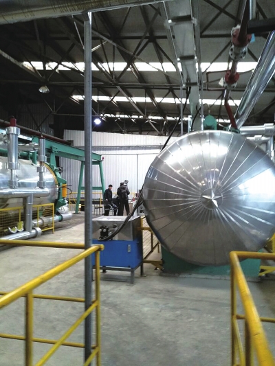 進(jìn)入廠區(qū),現(xiàn)代化的廠房、辦公樓和景觀綠化,似乎和餐廚垃圾處理工廠不相符。更讓人意外的是,從設(shè)有辦公、實(shí)驗(yàn)、生產(chǎn)控制中心、會議室、生產(chǎn)流程演示、產(chǎn)品成列等功能的現(xiàn)代化辦公樓出來后,走進(jìn)生產(chǎn)車間,除了可見4個(gè)大型餐廚垃圾喂料口外(即餐廚垃圾運(yùn)輸車傾倒口),全是大型箱體、罐體,以及各種粗細(xì)的管子相連,一道道工序?qū)崿F(xiàn)了自動化,看不見一點(diǎn)餐廚垃圾,這里像一座現(xiàn)代化的啤酒車間?!巴耆珜?shí)現(xiàn)了自動化?!?/p>