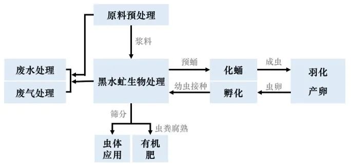 圖2 黑水虻生物轉化濕垃圾的基本工藝流程圖