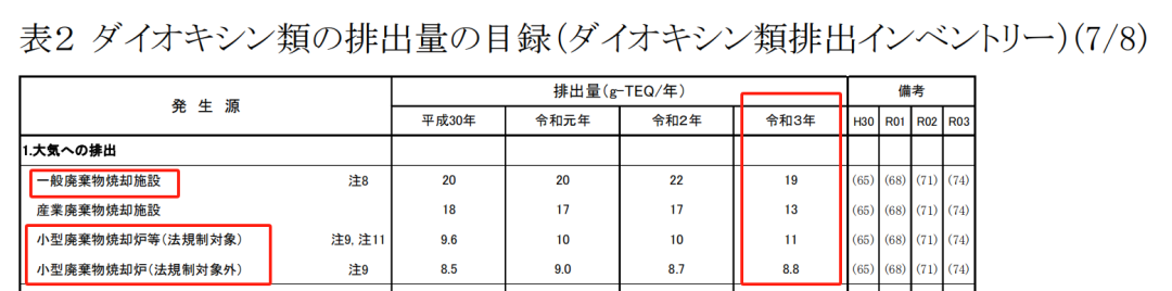可以說,日本垃圾焚燒的二噁英嚴(yán)控神話,已然隕落。以下為數(shù)據(jù)來源和分析計(jì)算過程A:日本環(huán)境省令和三年,即2021年垃圾處理報(bào)告B:日本環(huán)境省令和三年,即2021年二噁英排放清單 日本2021年,令和三年,垃圾總處理量3942萬噸,垃圾焚燒廠1028個(gè),總處理能力17萬5737噸每日。目前的現(xiàn)有產(chǎn)能空置率高達(dá)50%,遠(yuǎn)遠(yuǎn)高于我國(guó)水平。即便是這樣,在2021年當(dāng)年,還新建了28個(gè)新項(xiàng)目,產(chǎn)能新增了465噸每日,相當(dāng)于增加了28個(gè)17噸每日的小焚燒爐。日本有大量小型垃圾焚燒設(shè)施,允許間歇式運(yùn)行,有垃圾就燒,沒垃圾就停爐。(ごみ焼卻施設(shè),意為垃圾焚燒項(xiàng)目)數(shù)據(jù)顯示,2021年,日本垃圾焚燒的二噁英排放,合計(jì)為38.8克TEQ,占當(dāng)年全國(guó)各類污染源排放總量的39%。如果再加上一千四百個(gè)工業(yè)垃圾焚燒項(xiàng)目的二噁英排放量
