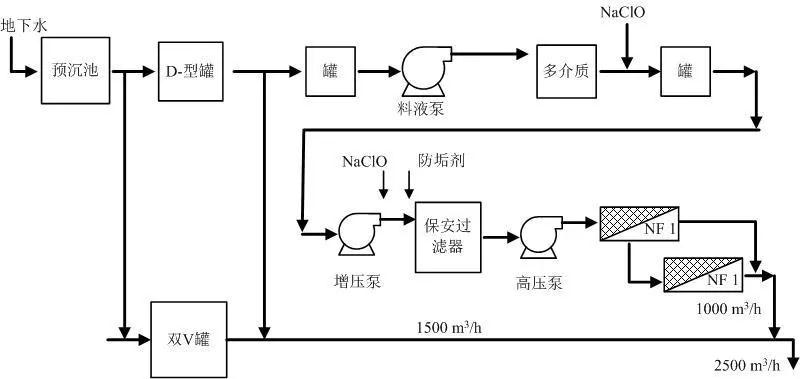 圖6 六壁頭水廠一級(jí)兩段式NF處理工藝