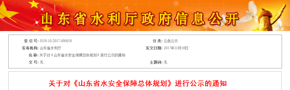 關(guān)于對(duì)《山東省水安全保障總體規(guī)劃》進(jìn)行公示的通知