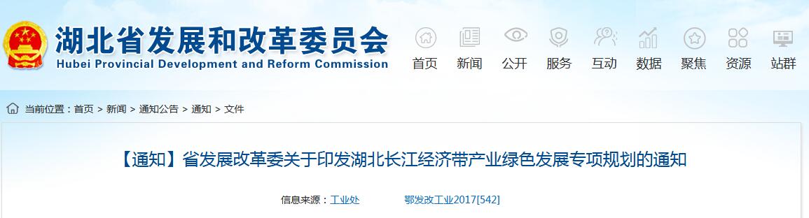 省發(fā)展改革委關(guān)于印發(fā)湖北長(zhǎng)江經(jīng)濟(jì)帶產(chǎn)業(yè)綠色發(fā)展專(zhuān)項(xiàng)規(guī)劃的通知