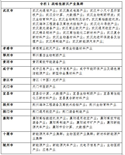 全面推進(jìn)“一主兩副多極”城市帶動(dòng)戰(zhàn)略,發(fā)揮武漢、襄陽(yáng)、宜昌等中心城市產(chǎn)業(yè)優(yōu)勢(shì)和輻射帶動(dòng)作用,以國(guó)家級(jí)、省級(jí)開(kāi)發(fā)區(qū)為主要載體,完善區(qū)內(nèi)和區(qū)外的產(chǎn)業(yè)鏈,建設(shè)世界級(jí)汽車(chē)、電子信息、工程設(shè)計(jì)施工產(chǎn)業(yè)集群,打造主導(dǎo)產(chǎn)業(yè)特色突出、優(yōu)勢(shì)明顯的長(zhǎng)江現(xiàn)代產(chǎn)業(yè)集聚帶。