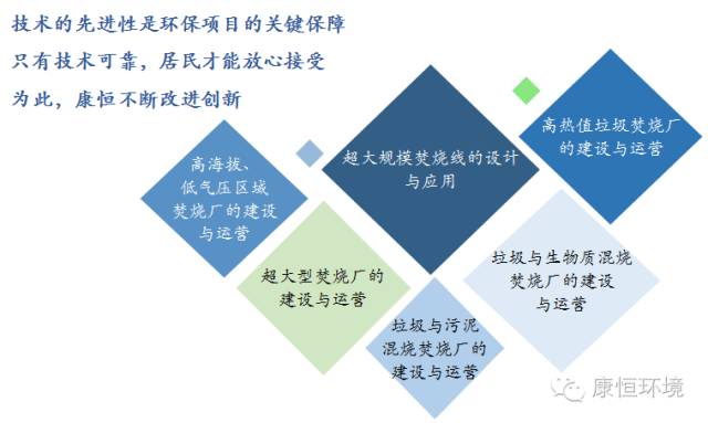 垃圾焚燒技術(shù)的先進(jìn)性是環(huán)保項(xiàng)目的關(guān)鍵保障,只有技術(shù)可靠,居民才能放心接受,為此,康恒環(huán)境選擇站在巨人的肩膀上,不斷創(chuàng)新??岛悱h(huán)境在全面引進(jìn)和消化世界領(lǐng)先焚燒技術(shù)的同時(shí),根據(jù)國(guó)情進(jìn)一步改進(jìn)和創(chuàng)新,使其更加適應(yīng)國(guó)內(nèi)生活垃圾的綜合治理。