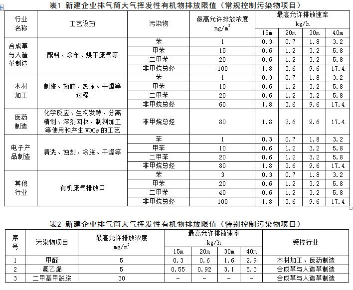 工業(yè)企業(yè)大氣揮發(fā)性有機物排放標準