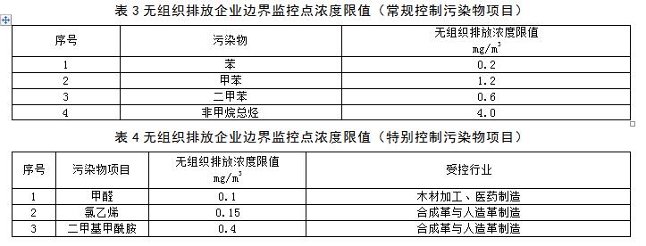 4.4.1無組織排放企業(yè)邊界監(jiān)控點濃度限值執(zhí)行表3、表4的規(guī)定。