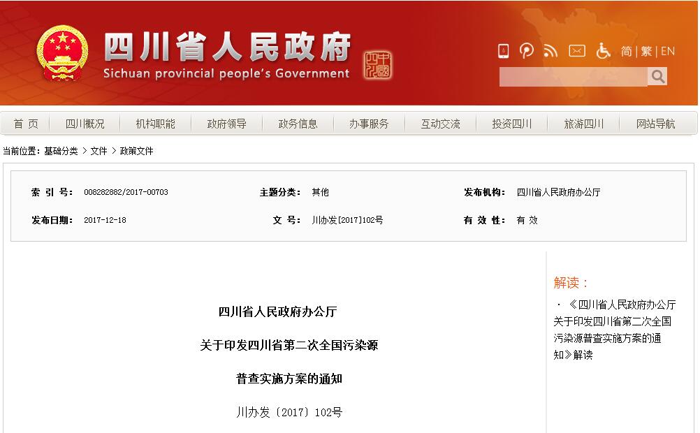 四川省人民政府辦公廳關(guān)于印發(fā)四川省第二次全國污染源普查實(shí)施方案的通知