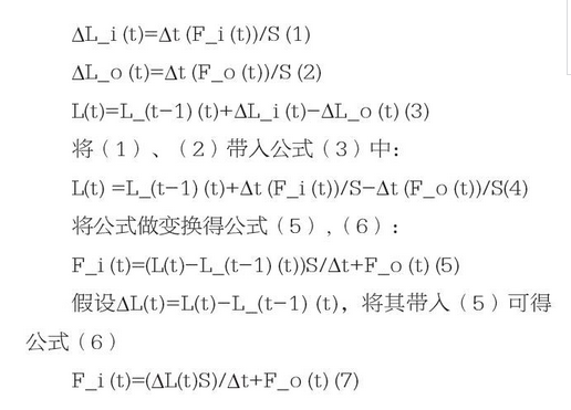 我們假設(shè)t時刻來水流量為Fi(t),集水池的液位就為L(t),S為集水池的底面積,膜進(jìn)水量Fo(t),ΔL_i(t)為來水液位增量,L_(t-1)(t)為t-1時的液位,ΔL_o(t)為超濾系統(tǒng)處理產(chǎn)量對業(yè)務(wù)液位增量。可得知:
