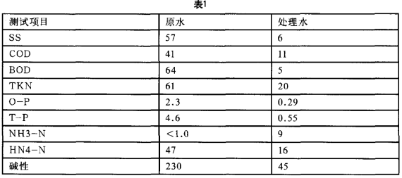 在采用生物法進行脫磷時,如果將規(guī)模比較小的脫氮槽放在脫磷槽前面,可以實現(xiàn)同時脫磷脫氮的目的。當曝氣時間維持了7.2個小時,脫磷槽和脫氮槽分別滯留時間為8.8個小時、5.8個小時,BOD容積負荷為0.21 kg/m3?d,在MLSS為2630 mg/L等等運行條件下,可以得到以下處理效果圖表。(見表1)