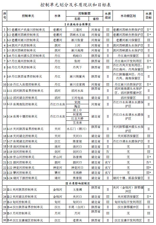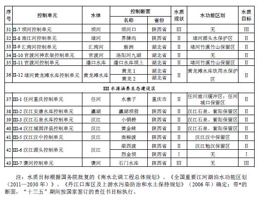 丹江口水庫和中線取水口水質(zhì)穩(wěn)定并保持Ⅱ類,庫區(qū)總氮濃度不劣于現(xiàn)狀水平;到2020年,漢江和丹江干流斷面水質(zhì)為Ⅱ類,其它直接匯入丹江口水庫的主要河流水質(zhì)達到水功能區(qū)水質(zhì)目標(biāo)。