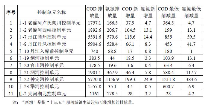 水質(zhì)不達標(biāo)或不穩(wěn)定達標(biāo)的11個優(yōu)先控制單元,“十三五”期間,污染物排放量削減不得低于下表要求,實現(xiàn)治理達標(biāo)。達標(biāo)治理優(yōu)先控制單元污染物削減任務(wù)表(單位:噸/年)